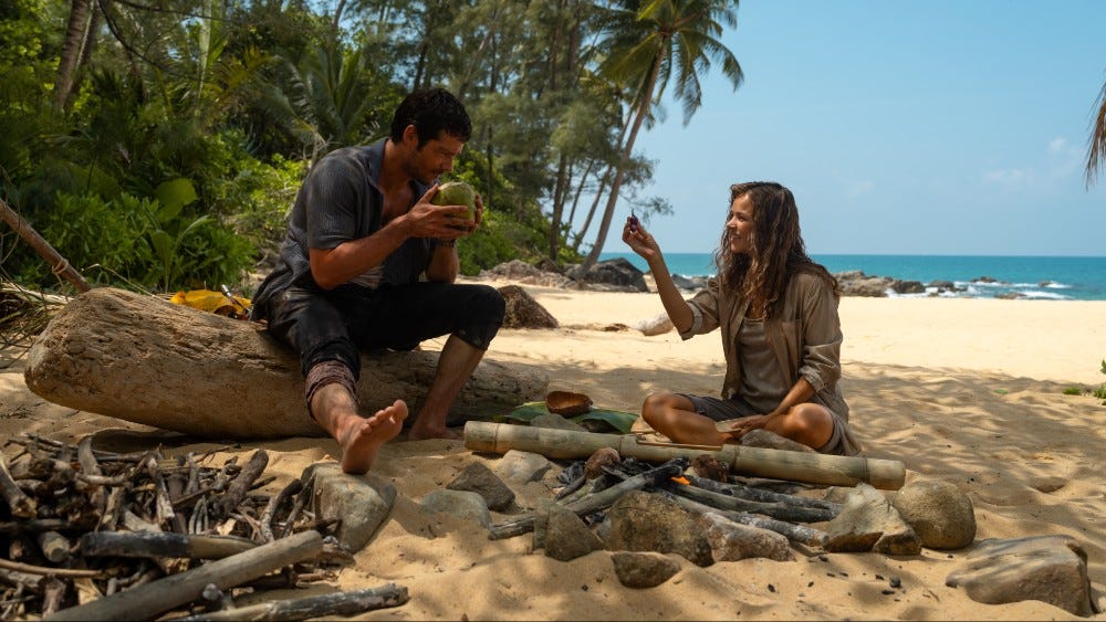 Essentially, it’s a two-hander between these two fine actors. Although it mostly takes place on this beach, their relationship never gets tiresome as new ideas gets thrown into the mix. At times, it feels like the craziest meet-cute rom-com of all time, then there’s even a point when it swerves into Misery territory, as we see how far Linda will go to keep her paradise hierarchy in place.